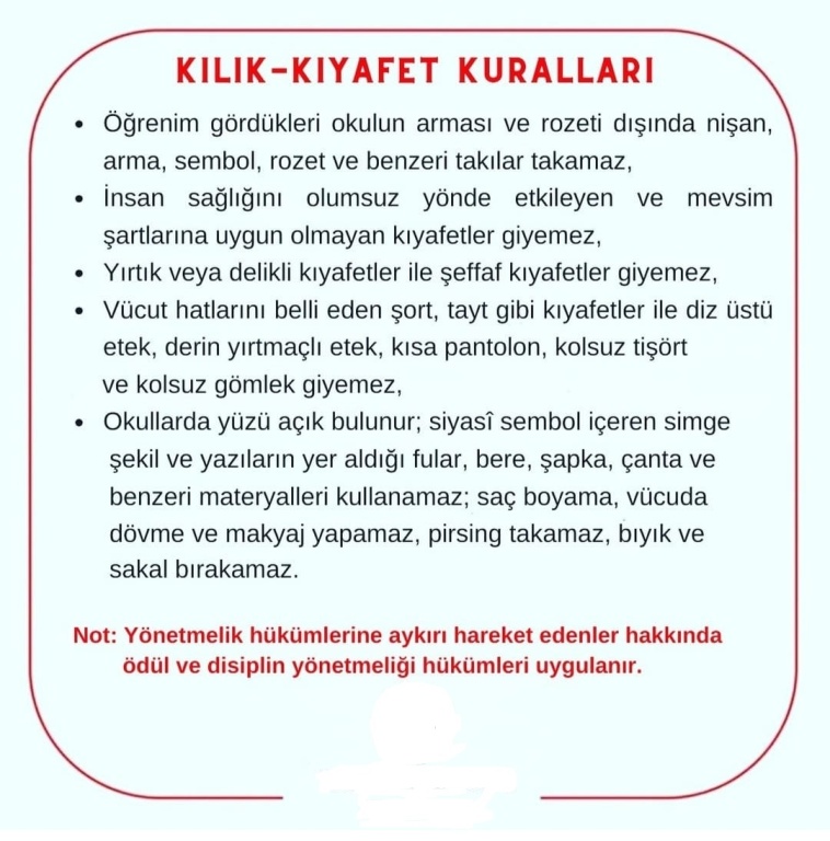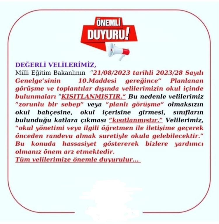 Değerli velilerimiz 2025-2026 Eğitim-Öğretim Yılı Günlük Zaman Çizelgesi ve Okul Kuralları Yayımlanmıştır.